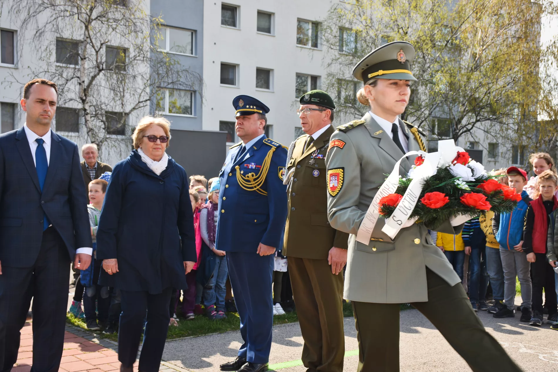 Uplynulo už 74 rokov od vtedy čo sovietske vojská vstúpili do nášho mesta ukončili vojnové boje a nastal vytúžený mier. 74 rokov je úctyhodný vek a udalosti z tej doby sa pomaly strácajú v nánose prachu zabudnutia. Pamätníci sa potichu vytrácajú, a o tom ako to vtedy - v apríli 1945 bolo sa dozvedáme už iba z dobových dokumentov alebo historických záznamov. Čas sa nedá zastaviť. Na pietnej spomienke boli prítomní aj členovia Styčného Tímu pre Integáciu Síl NATO Force Integration Unit in Slovakia – NFIU, plukovník Ing. Peter BRAUNER - Ozbrojené sily Slovenskej Republiky, major Leszek LIPIEC - Siły Zbrojne Rzeczypospolitej Polskiej a major Ing. Ľubomír JÁNSKY – Armáda České republiky.