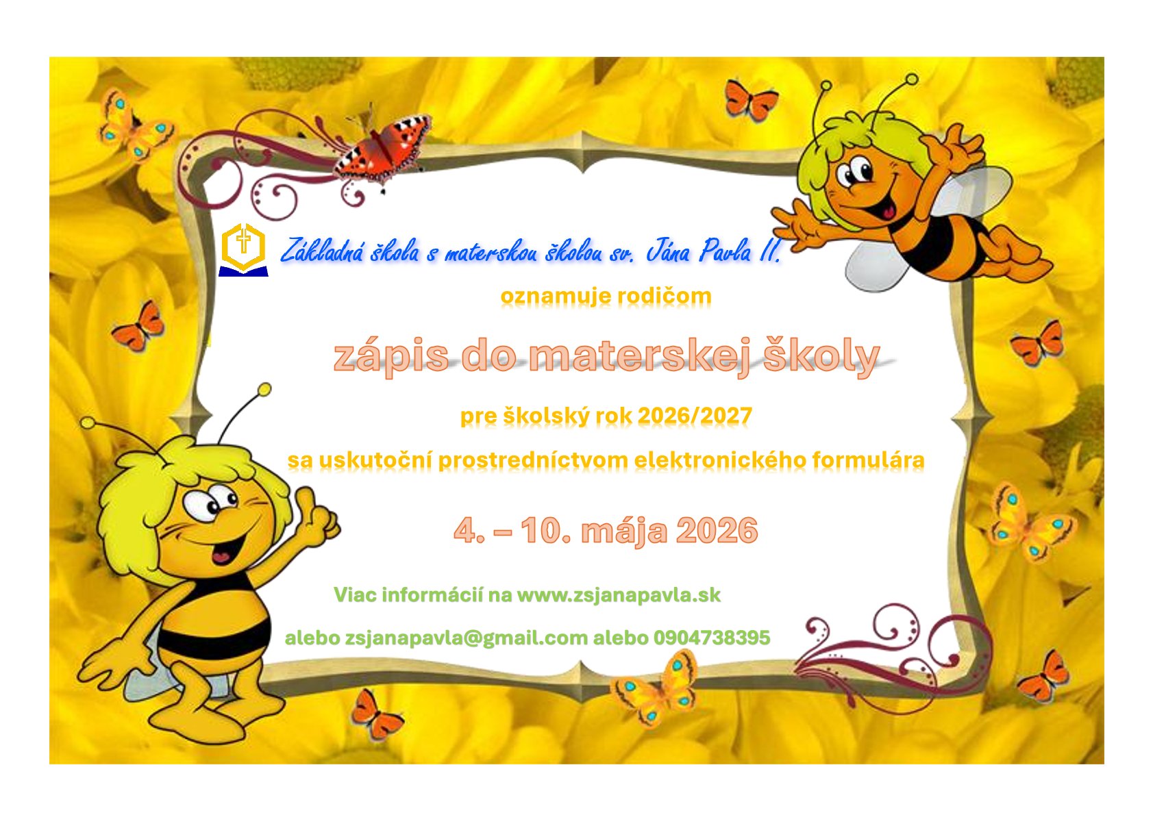 Zápis do materskej školy sv. Jána Pavla II.