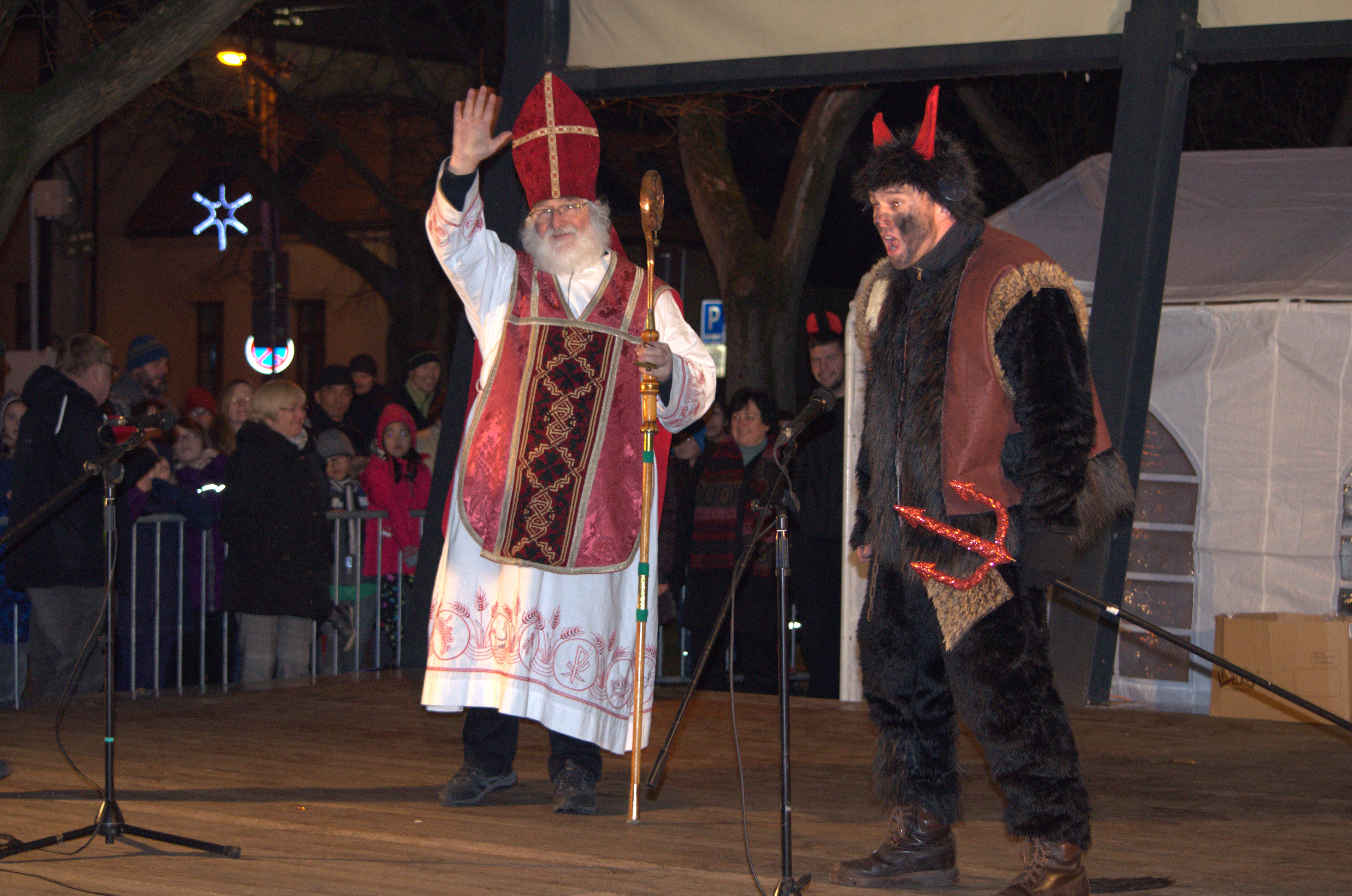 Včera podvečer navštívil Vajnory sv. Mikuláš s čertom. Najmenší obyvatelia dediny v meste ho privítali v hojnom počte na námestí Pod lipami. Deti z oboch vajnorských škôl mu prichystali program, zaspievali pesničky , zarecitovali básničky . Potom sv. Mikuláš spolu s prítomnými deťmi rozsvietil na námestí vianočný stromček. Stretnutie pokračovalo obdarovaním detí. Niektoré na pódiu milému hosťovi zaspievali pesničku či zarecitovali a on ich za to obdaroval balíčkom. Tie deti, ktoré nechceli vystúpiť si mohli balíček zobrať od Mikulášových pomocníkov v pripravených stánkoch. Nálada bola pekná, predvianočná a nikomu neprekážalo že teplota klesla pod nulu.