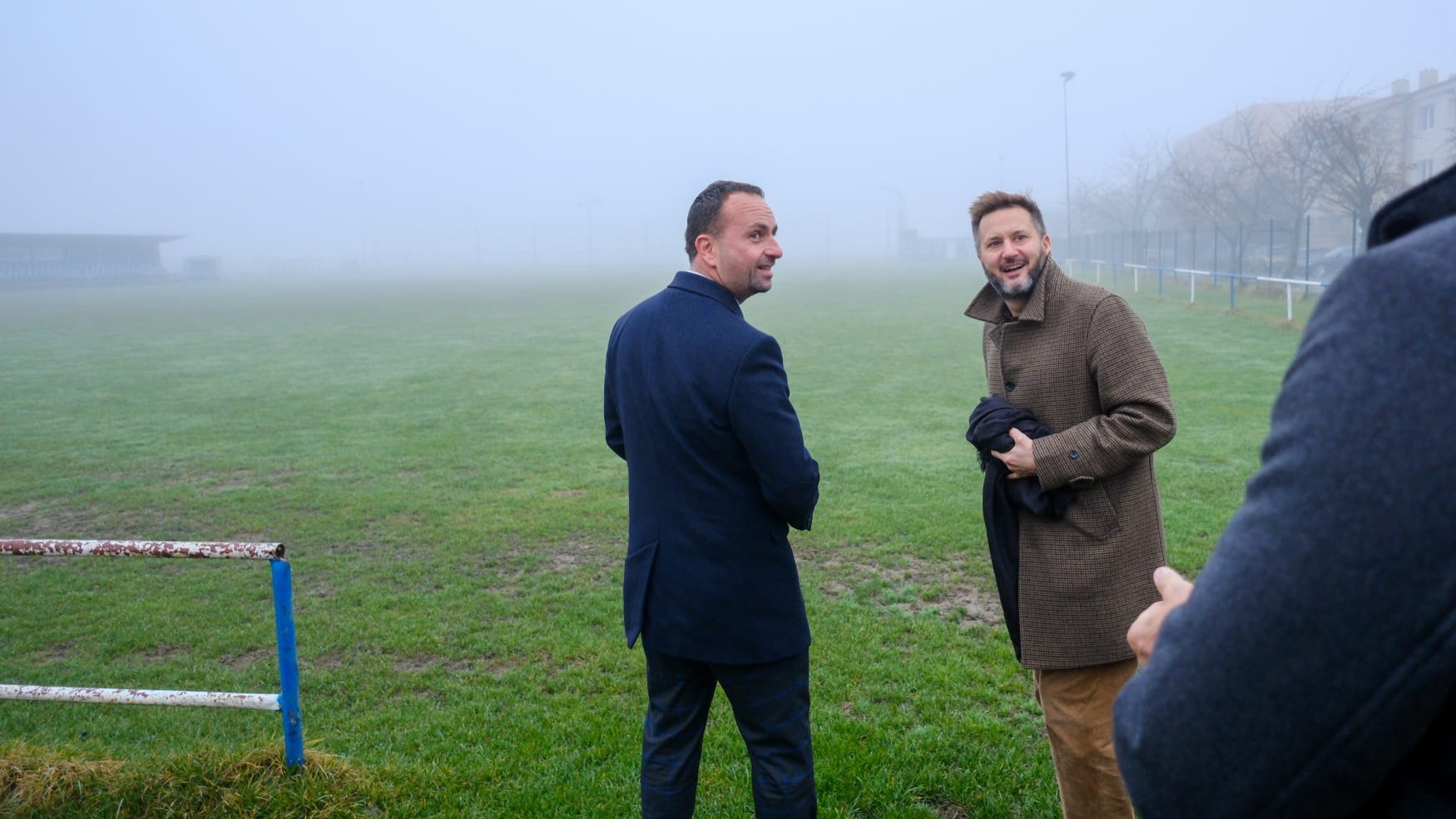 Zdroj: Marek Velček, Starosta Michal Vlček a primátor Matúš Vallo na futbalovom štadióne vo Vajnoroch