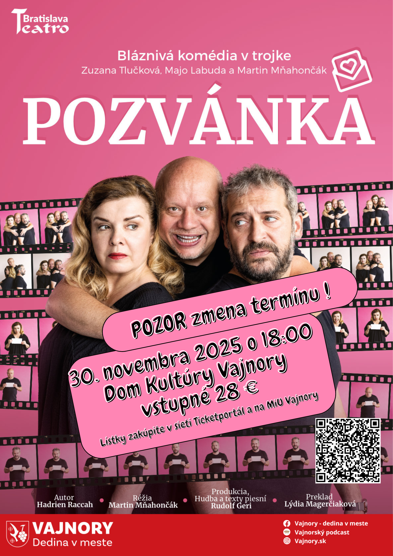 Divadlo sa z technických príčin sa presúva na termín 30.11.2025, zakúpené lístky ostávajú v platnosti na tento náhradný termín.