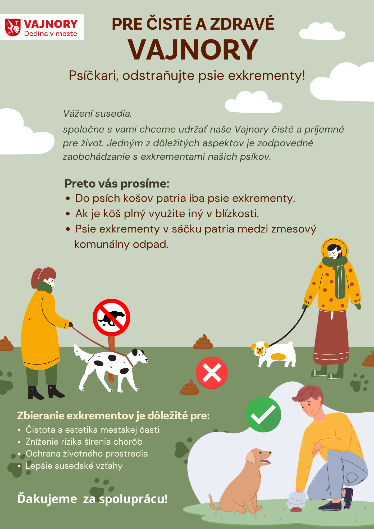 Chceli by sme našu dedinu v meste udržiavať čistú a príjemnú pre každého z nás. Preto je dôležité, aby sme sa všetci zodpovedne postarali o exkrementy našich psíkov, pretože to ovplyvňuje nielen náš každodenný život, ale aj celkovú atmosféru nášho okolia.