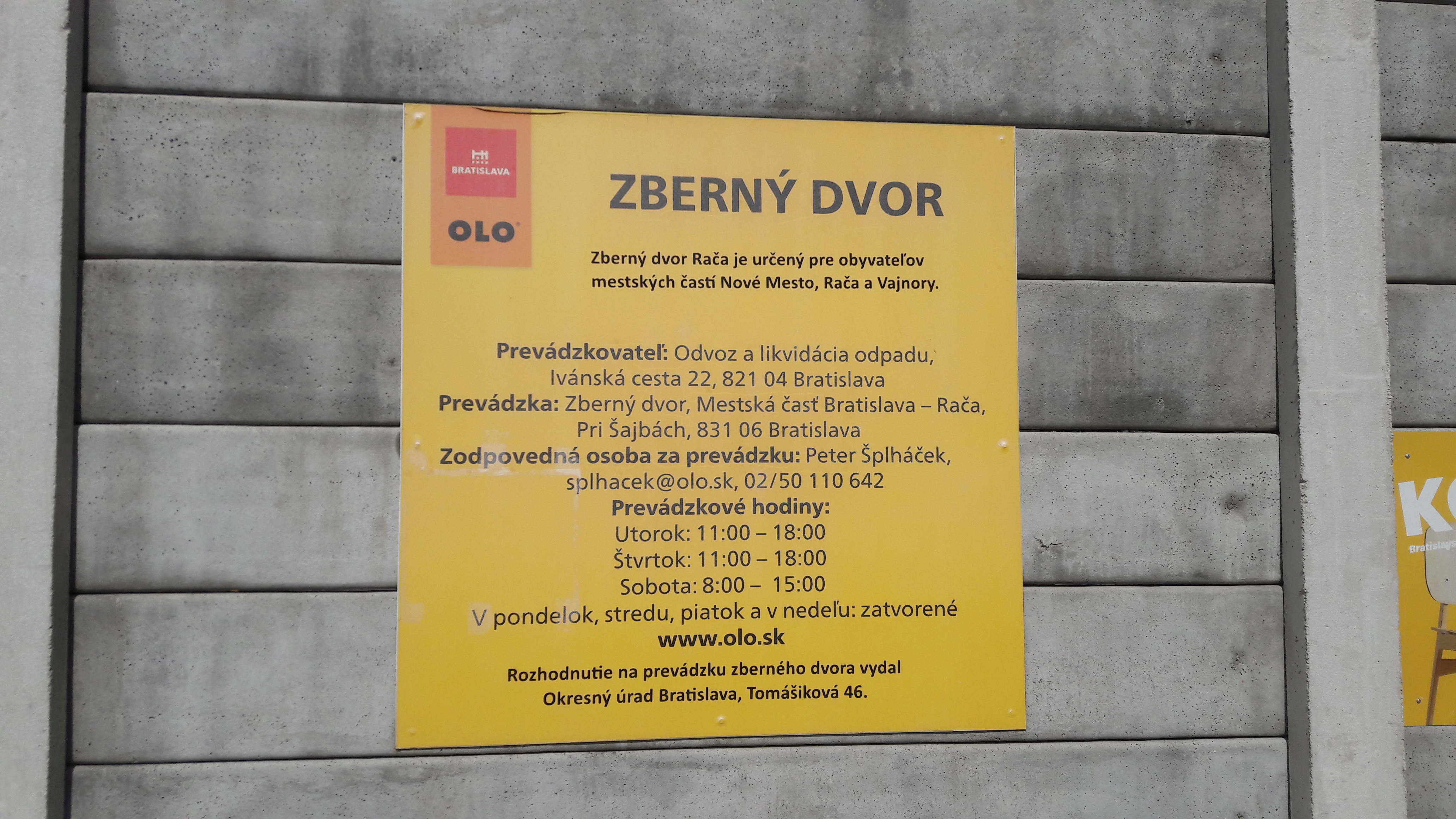 Všetky informácie o sezónnom zbernom dvore Rača nájdete na web stránke https://www.olo.sk/zberny-dvor-raca/