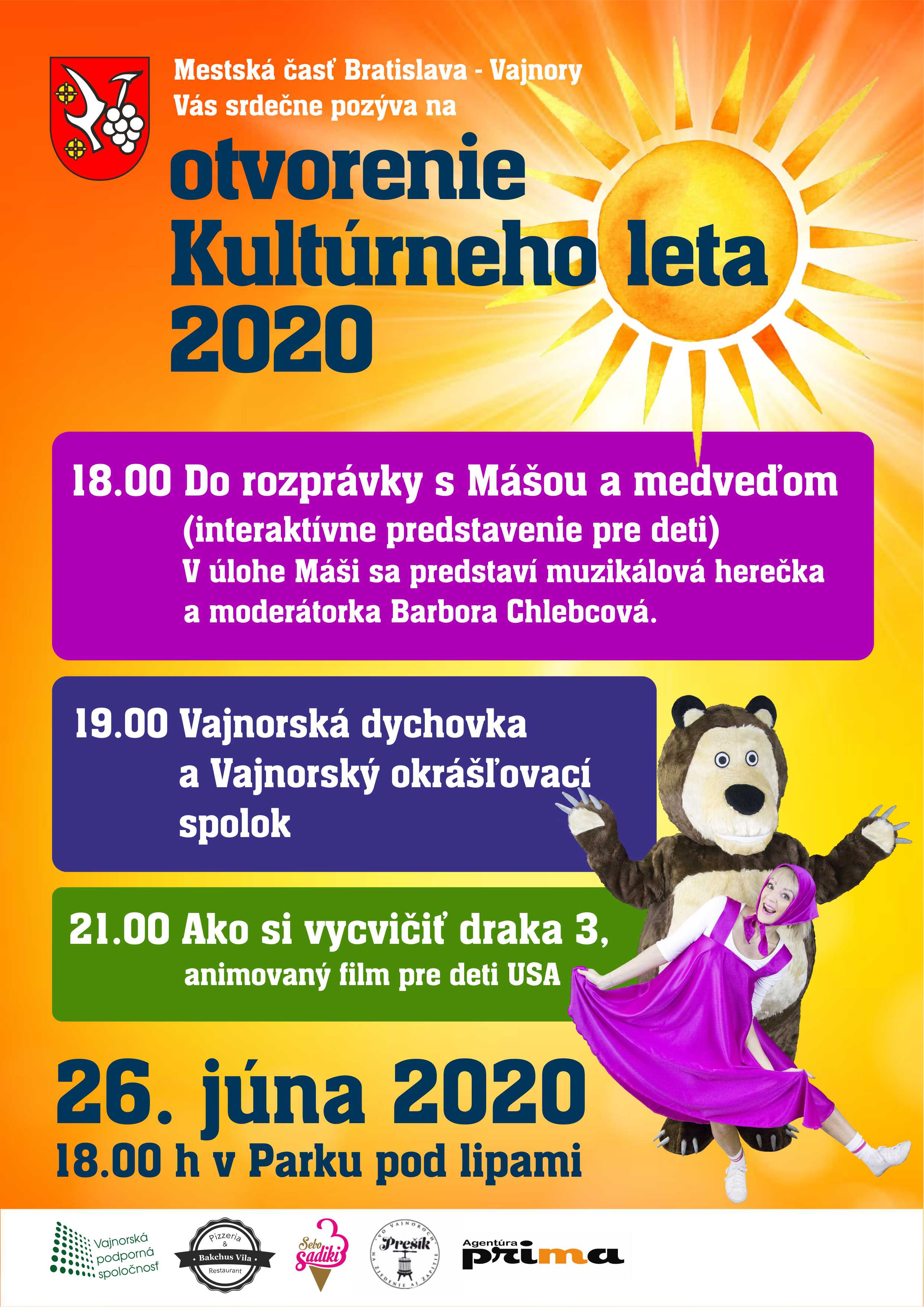 MČ Bratislava-Vajnory Vás srdečne pozýva na Otvorenie Kultúrneho leta 26.júna 2020 o 18.00 h do Parku pod lipami.